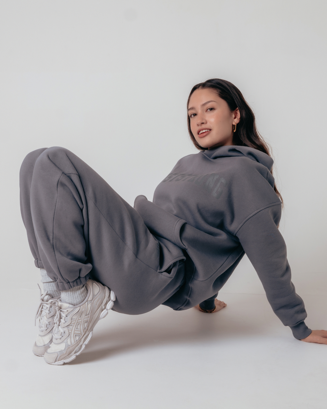 The Essential Oversized Hoodie is crafted from cotton-rich brushed fleece for exceptional softness and warmth, making it perfect for cooler days or post-workout recovery.